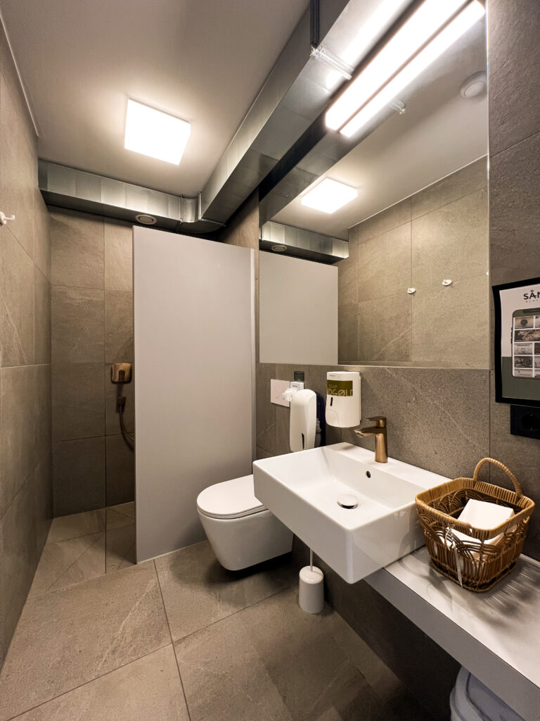 Geen standaard sanitairgebouw, maar moderne badkamers met nét dat beetje extra comfort. Elke badkamer heeft een douche, wastafel en toilet. Voor nog meer gemak kun je zelfs je eigen privébadkamer huren, zodat je altijd een plek hebt waar je spullen gewoon kunnen blijven staan. Perfect als je met kinderen op vakantie bent.