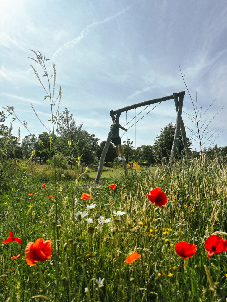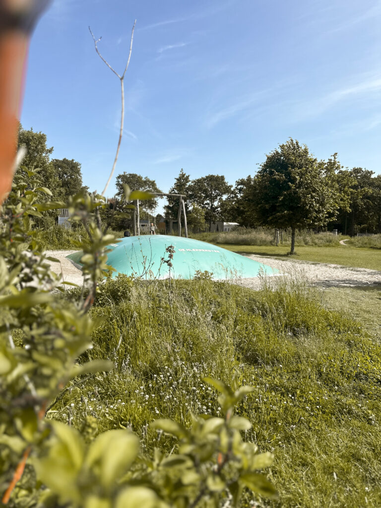 Her en der vind je een aantal speeltoestellen. Niet overdreven veel, maar eerlijk gezegd is dat op zo’n fijne plek met zoveel ruimte ook niet nodig.